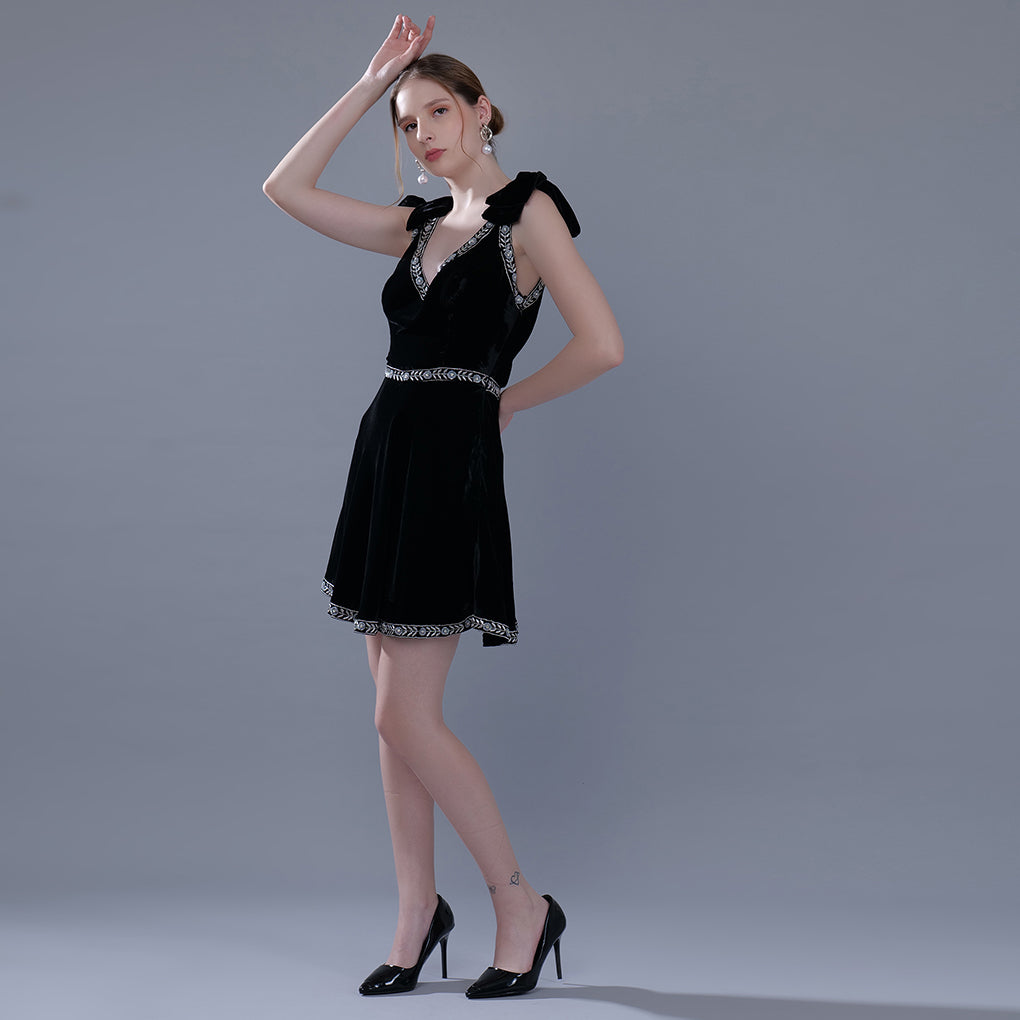 Experience the enchantment of the night with the Enchanted Velvet Twilight Dress, a garment made to be remembered.